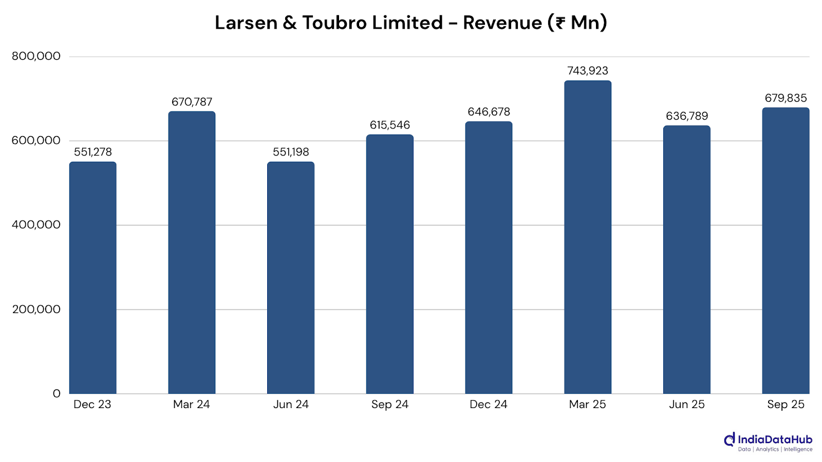Larsen & Toubro Limited: Profits rose steadily, thanks to record order inflows and broad-based project wins. While margins softened slightly, L&T’s expanding global order book and infrastructure push kept growth momentum firm across core and emerging sectors.