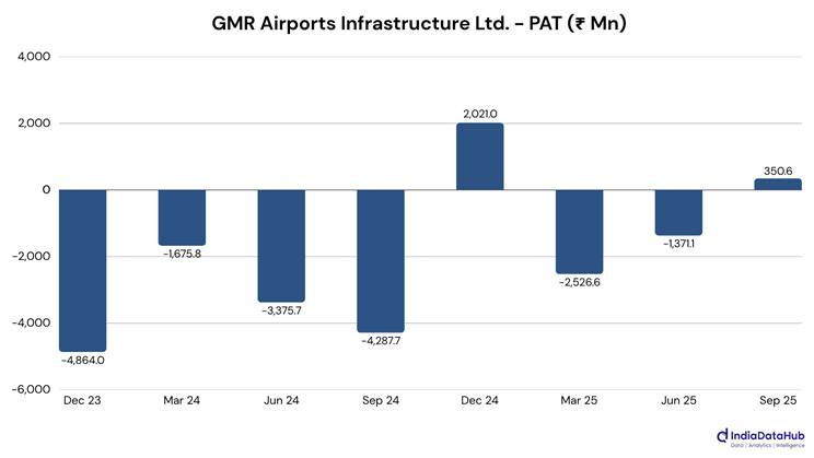 GMR Airports Infrastructure Ltd. (Services): Posted a strong rebound, with traffic recovery and higher aero and non-aero income driving a sharp revenue jump and a clean swing to profit. Margins improved too, helped by smoother operations and new commercial initiatives across key airports.