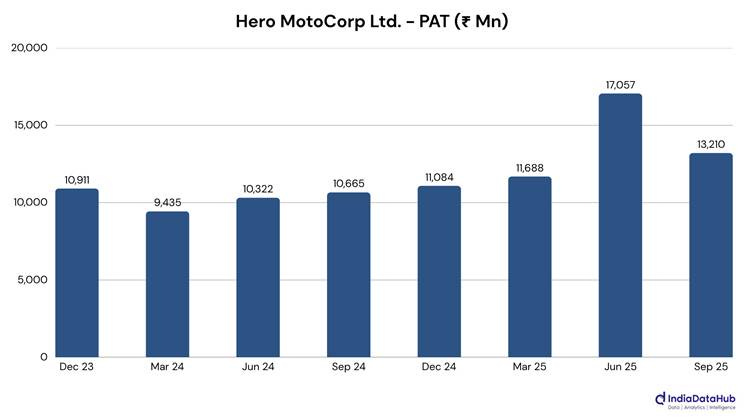 Hero MotoCorp Ltd. (Consumer Discretionary): Logged record revenue and profit as festive-season demand stayed strong across bikes, scooters, and a growing EV line-up, with overseas markets also adding momentum and margins improving even while input costs and broader macro uncertainties remained in the backdrop.