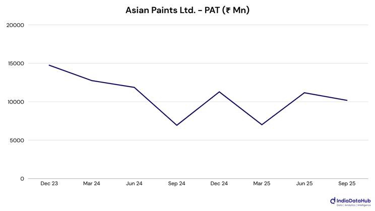 Asian Paints Ltd. (Consumer Discretionary): Turned in an impressive print, with modest revenue growth translating into a sharp profit jump as decorative volumes stayed strong and margins widened on a better mix and efficiencies, even as monsoon disruptions and input-cost worries lingered in the background.