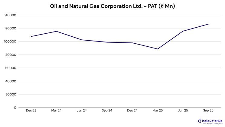 Energy remained a major driver of profitability, with PAT growing nearly 52%. Gandhar Oil posted one of the cleanest improvements this season, driven by stronger demand, a better mix, and tighter cost control. ONGC also delivered a strong profit jump despite flat revenue, helped by firmer gas prices and improved operational efficiency. City-gas players such as Gujarat Gas and IGL had a tougher quarter, with rising input costs clearly narrowing margins even as volumes stayed healthy.