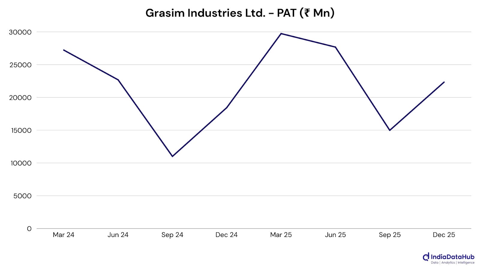 Grasim Industries Ltd. (Commodities): Record revenue rose 27%, and profit grew 21% as cement volumes and VSF exports held up, while Birla Opus scaled and financial-services AUM expanded. EBITDA climbed 33% despite a labour-code charge; the portfolio’s mix seems to be supporting momentum.