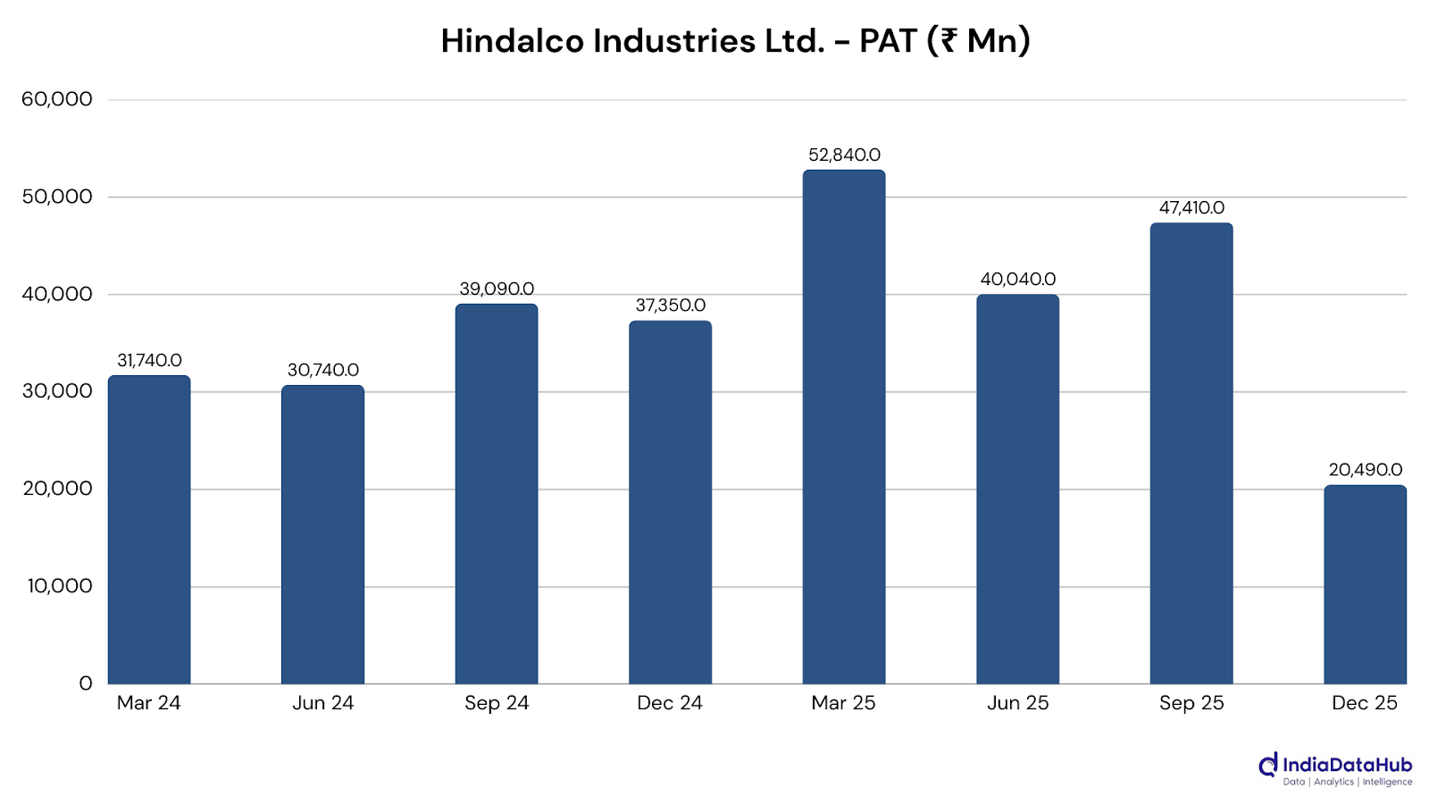 Hindalco Industries Ltd. (Commodities): Sales climbed 14%, and EBITDA inched up 5%, but profit slumped 45% after a large exceptional hit tied to Novelis’ Oswego fire disruptions. The damage looks more like a one-off US execution than weak Indian aluminium/copper demand.