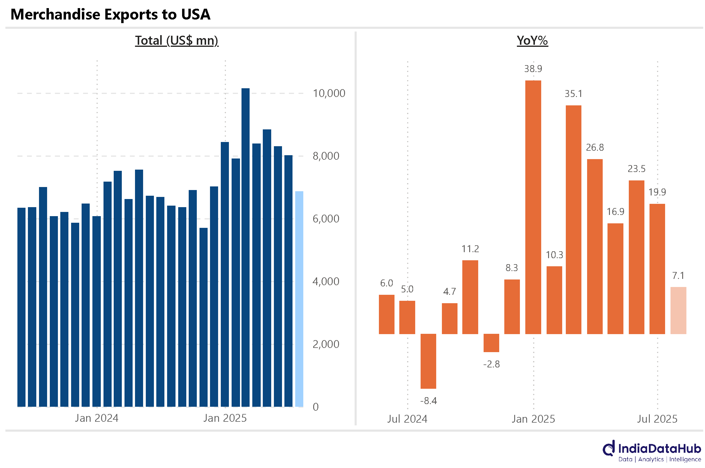 The most important data point from the trade data release, though, was exports to the USA. And after months of strong growth, export growth moderated to 7% YoY, the slowest growth this year. Note that the tariffs on Indian goods had kicked in in August. The full impact of the tariffs, though, will be felt next month, and so it is almost a given that exports to the USA will decline in September. The positive takeaway, though, is that overall export growth remained unchanged, despite the sharp moderation in export growth to the USA. If this continues in September also, then it would suggest that in the immediate near-term, at least, there has not been much impact of US tariffs on Indian exports. We shall see…