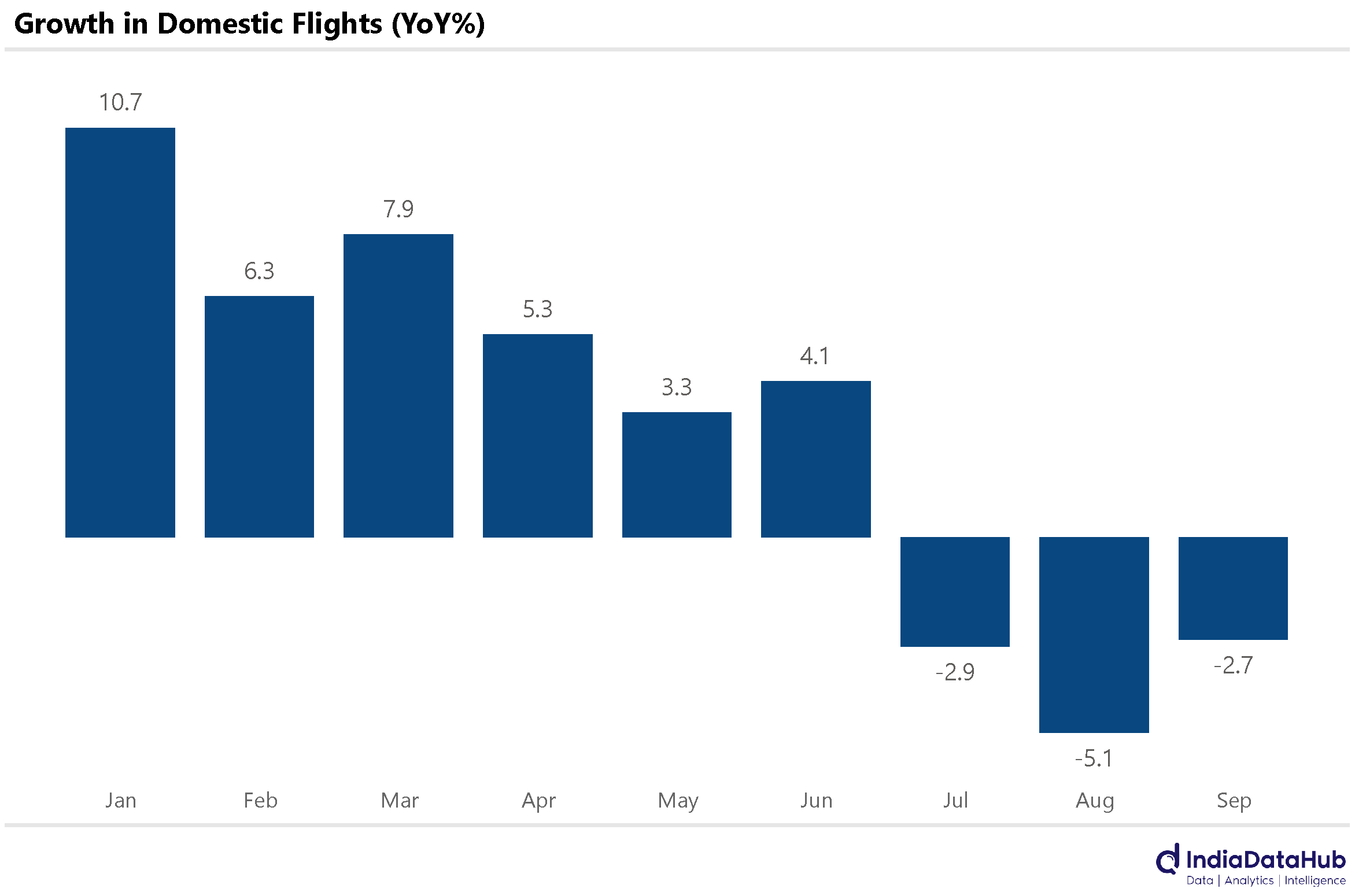 Domestic aviation sector is seeing a slowdown with domestic flights and passengers declining for 3rd consecutive month