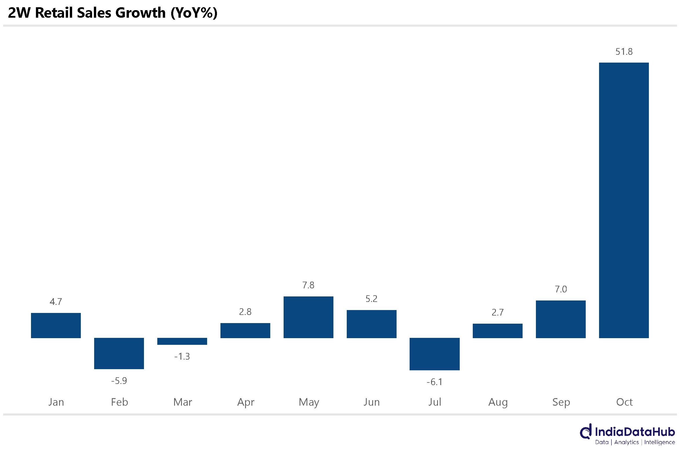 2W sales see sharp rebound in October but growth in Car sales remains modest