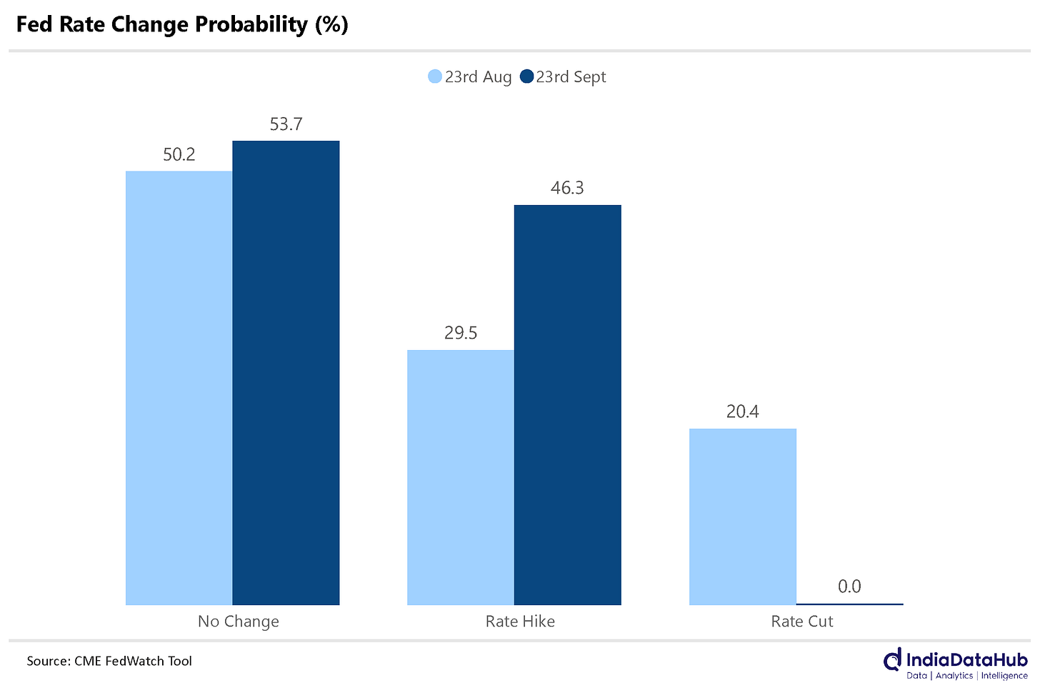 Lastly, the Fed. It kept interest rates unchanged in its policy meeting this week. But it did leave the door open for a one-last rate hike later this year or early next year. Accordingly, the Fed Fund futures are now implying a 46% probability of a rate hike from the Fed between now and the end of January whereas a month back, the odds of a rate hike were less than 30%. More importantly, the probability of a rate cut from the Fed crosses 50% only by July next year. So, US rates and in turn global rates, are likely to remain higher for longer.