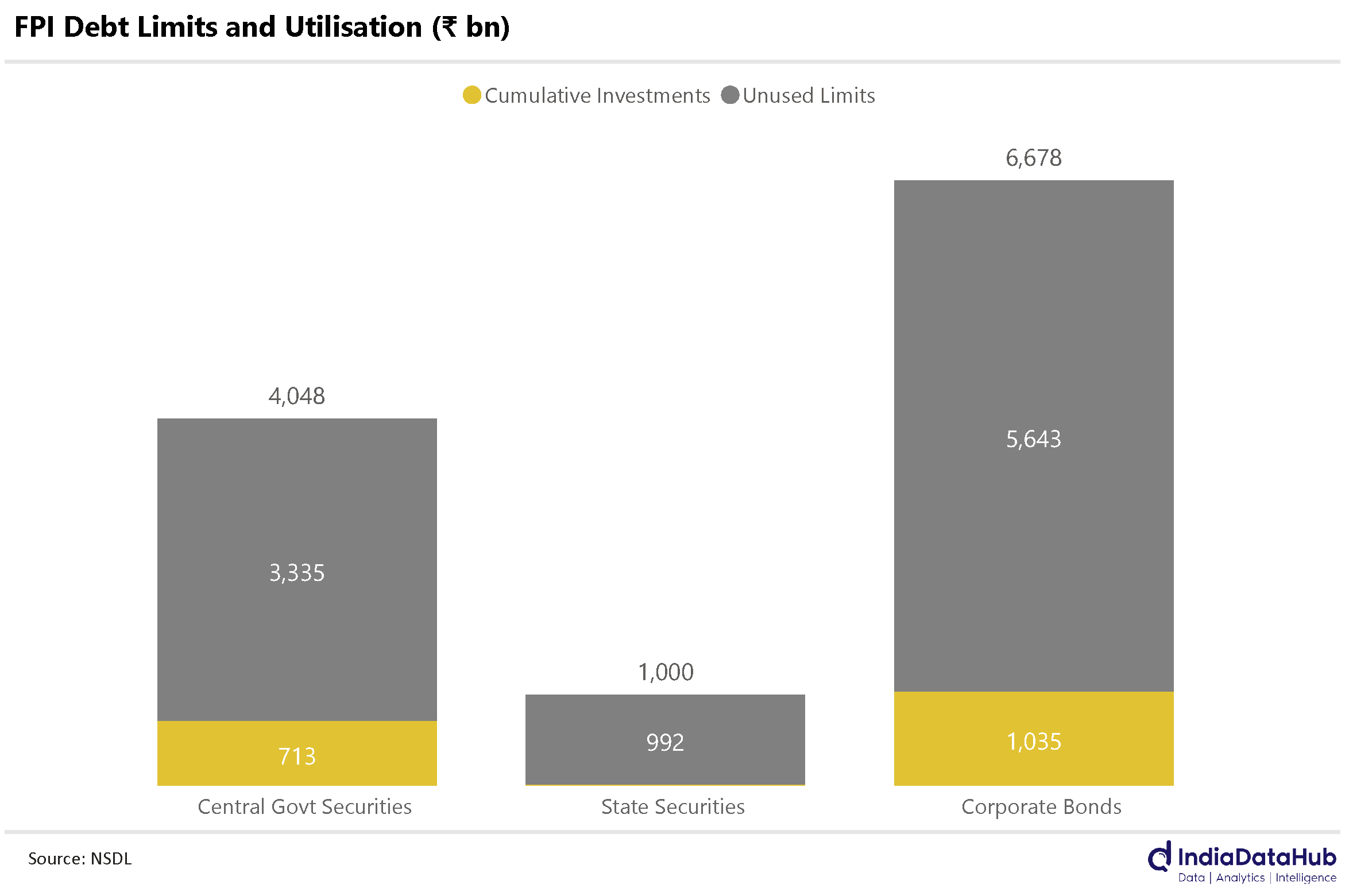 So, India gets into the global bond indices. Ahoy! This is expected to increase the capital flows into India and specifically the government securities market. While the government has allowed foreign investors to buy Central government securities of up to US$50bn, cumulative investments to date are less than 20% of this limit. Foreign investors can currently invest an additional US$40bn in central government bonds. In addition, there are unused limits of almost US$70bn in corporate bonds. So, the inclusion in bond indices will perhaps make foreign investors use some of these unused limits – either due to them being benchmarked to those indices or just the added conviction that this inclusion provides.