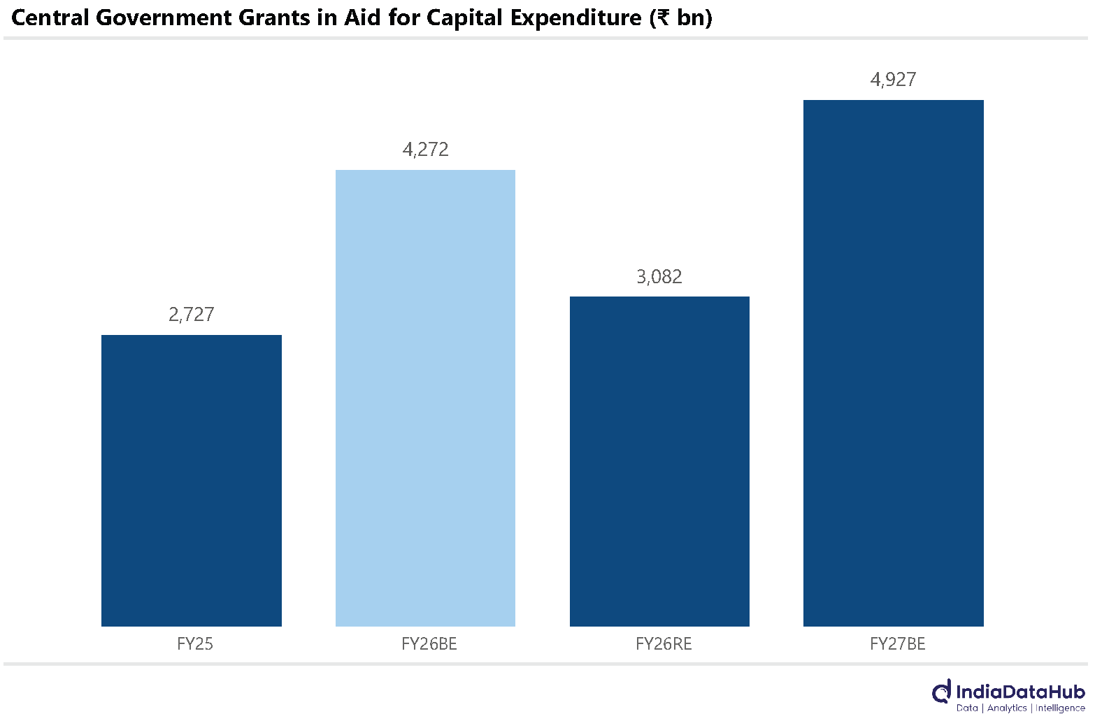 Total receipts for FY26 as per the revised estimates are likely to be lower than the budget estimate by ~₹900bn. In contrast, total expenditure is likely to be lower by ₹1000bn. And this entire shortfall (and some more) is due to lower grants (to states) for capital expenditure. The government had budgeted grants of ₹4,272bn as grants for capital expenditure in the budget last year. The revised estimate is almost 30% lower at ₹3,081bn. This will not have an impact on the Centre’s capital expenditure, which in any case, is independently expected to grow by less than 5% in FY26 as per the revised. But this will weigh on the state government’s capital expenditure. And the first few state budgets that have come in reflect this.