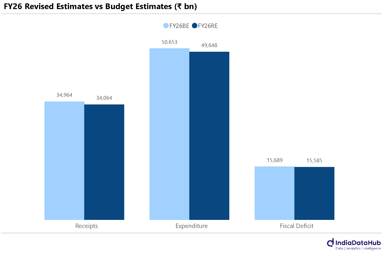 The interesting question, though, is how this fiscal consolidation is being achieved. In the current year (FY26), as per the revised estimates, revenues will miss budget estimates. But this has been more than offset by lower expenditure.