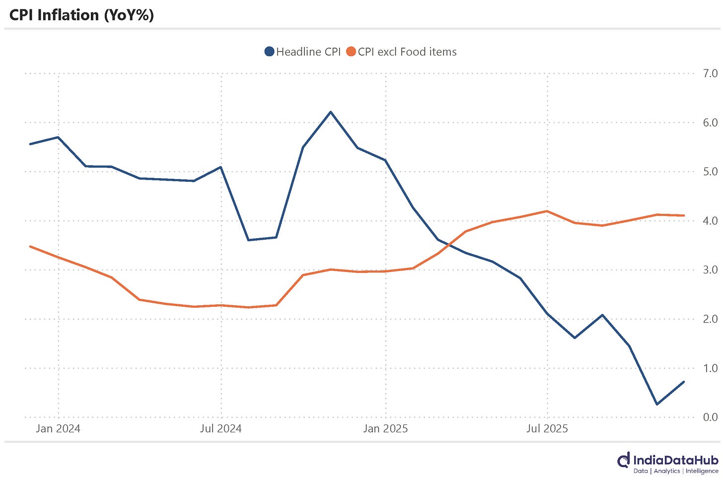 Bottom line is that there do not seem to be any underlying inflationary pressures. And it is this that drove the RBI to cut rates last week. And as things stand now, if inflation continues to undershoot the projected trajectory (RBI expects inflation to average ~3% during the March quarter), there might be another 25bps rate cut in the February policy meet. We shall see…